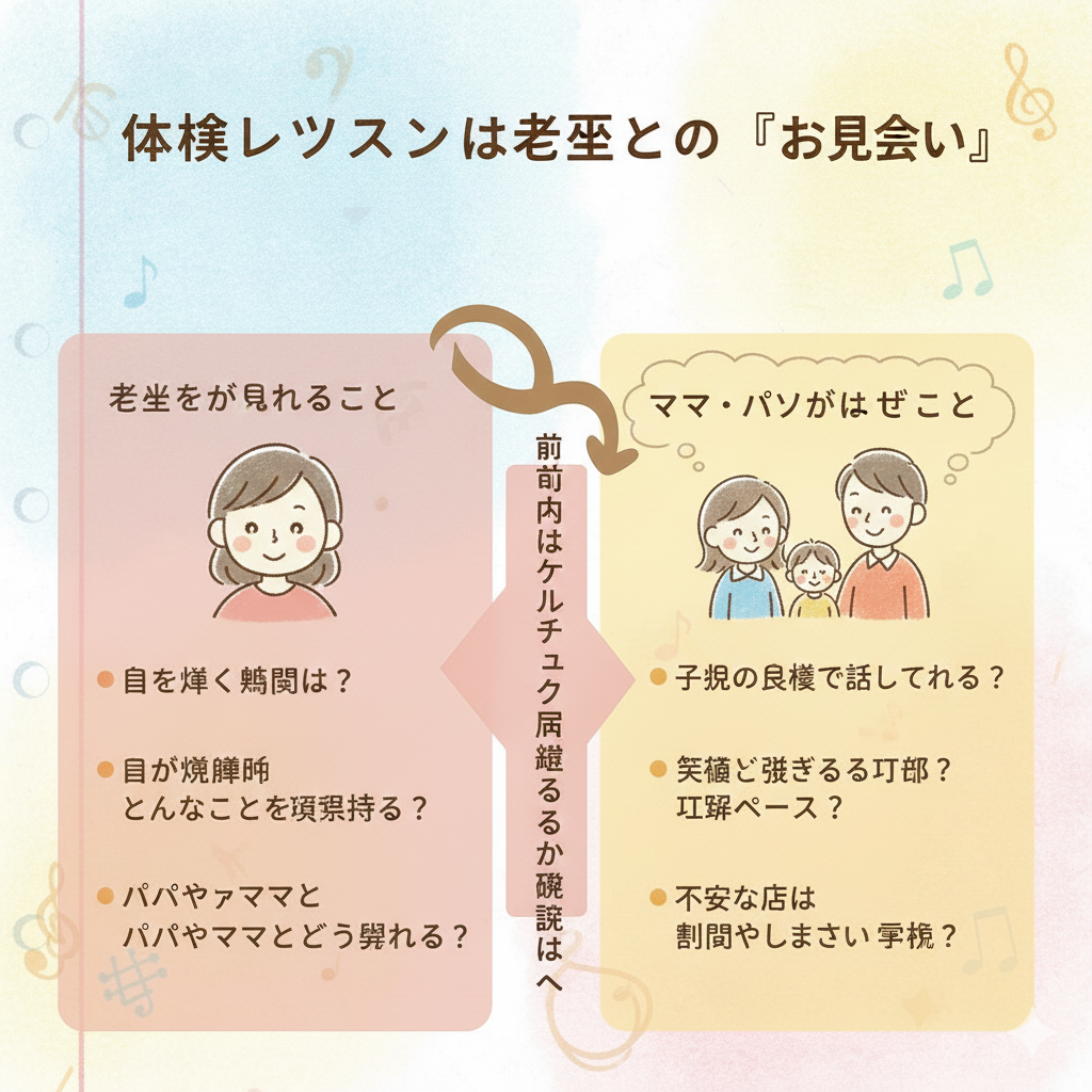 この記事では、元・大手音楽教室の講師である私が、その不安を自信に変えるための「”安心”体験レッスン完全ガイド」をお届けします。記事の最後には、印刷してそのまま使える「魔法の質問リスト」も付いています。